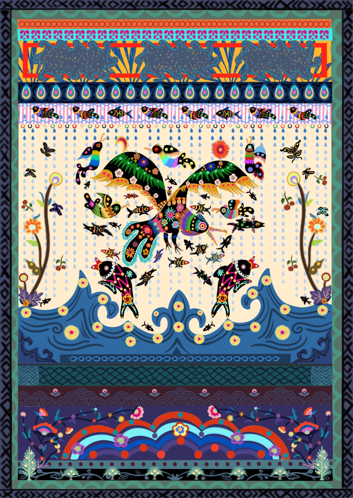 作品说明:运用传统非遗元素进行设计绘画,与原创绘本故事相结合创作出这张插画