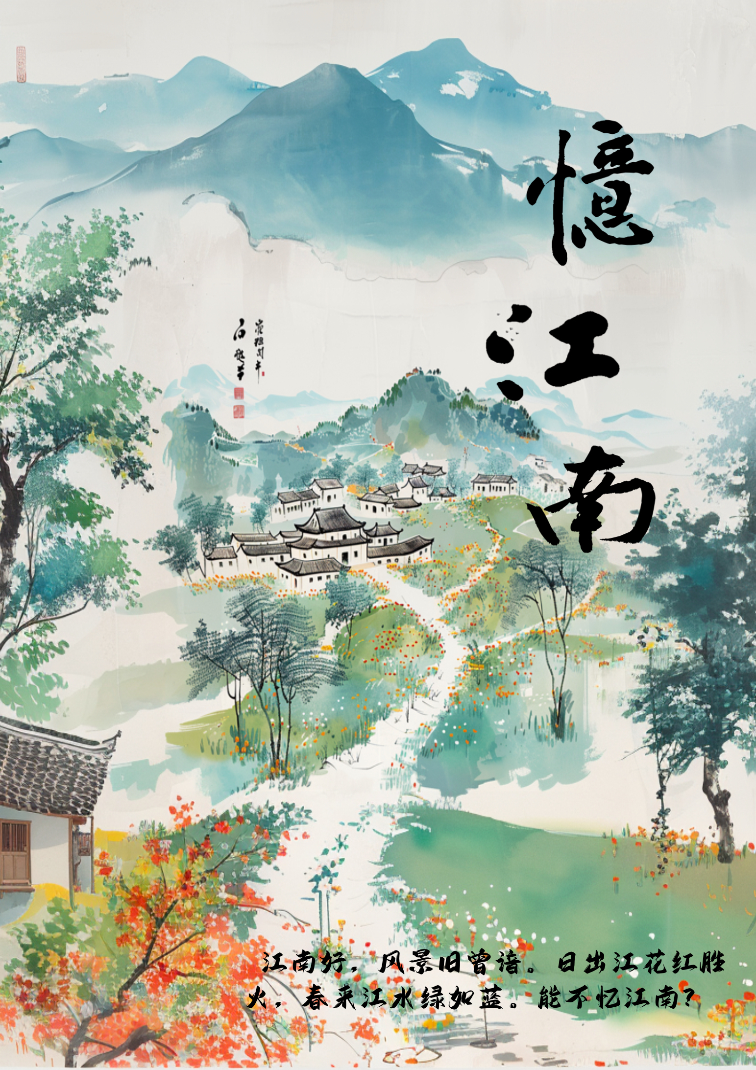 作品说明:本AIGC作品紧扣“忆江南”主题,以数字技术为笔,非遗文化为墨,绘就江南水墨新章。创作中,深度解析江南建筑飞檐翘角、园林叠石理水等经典元素,融合苏绣、蓝印花布等非遗纹样肌理,将传统水墨的留白意境与AI算法生成的细腻笔触相融合。通过智能调色系统,精准还原江南烟雨朦胧的青灰黛绿,以动态渲染模拟皴擦点染的笔墨韵味。作品在虚实交织间,让江南的山水人文、历史遗韵跃然屏上,实现传统文化与现代科技的碰撞交融,赋予江南意象全新的视觉表达与时代生命力。