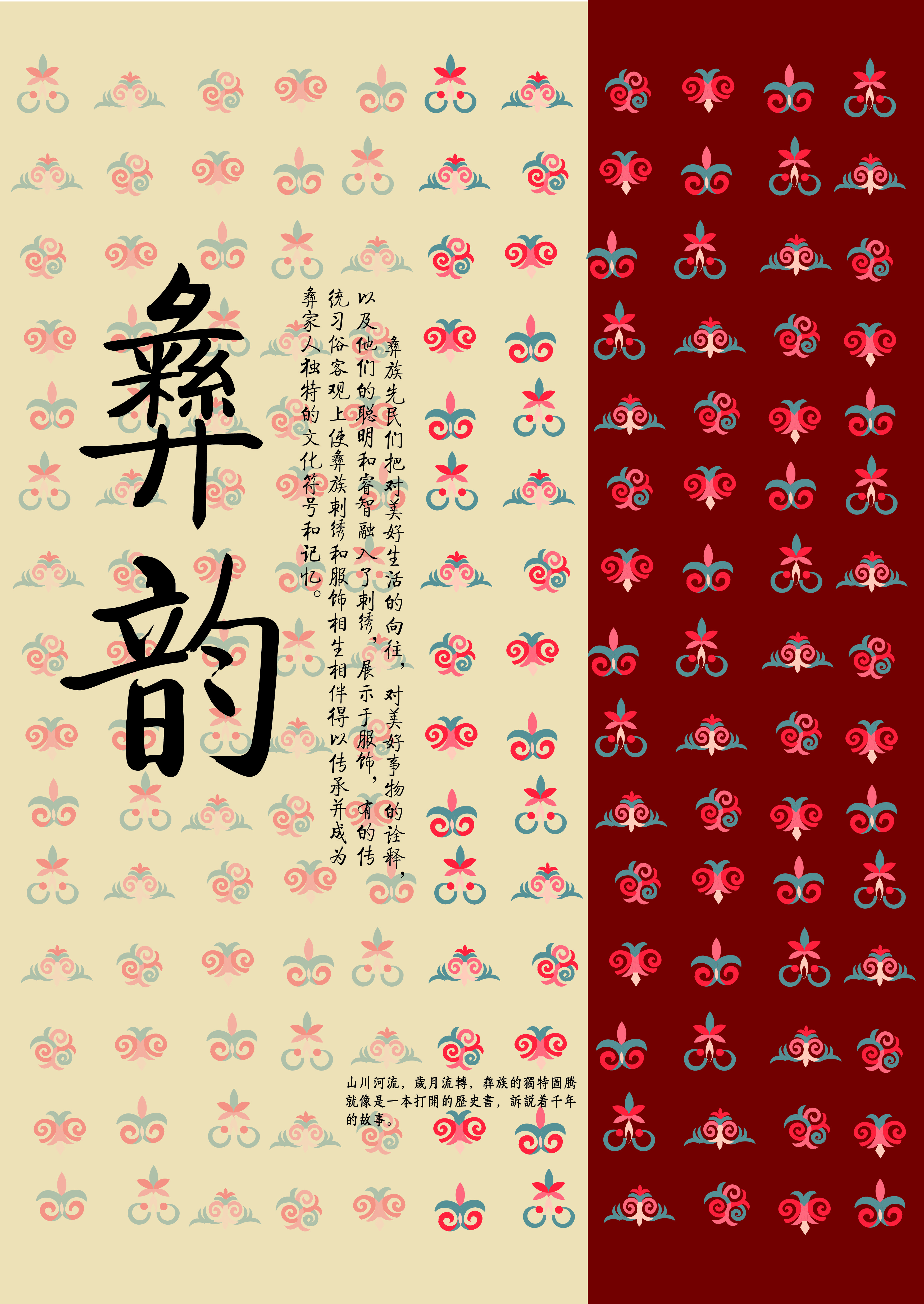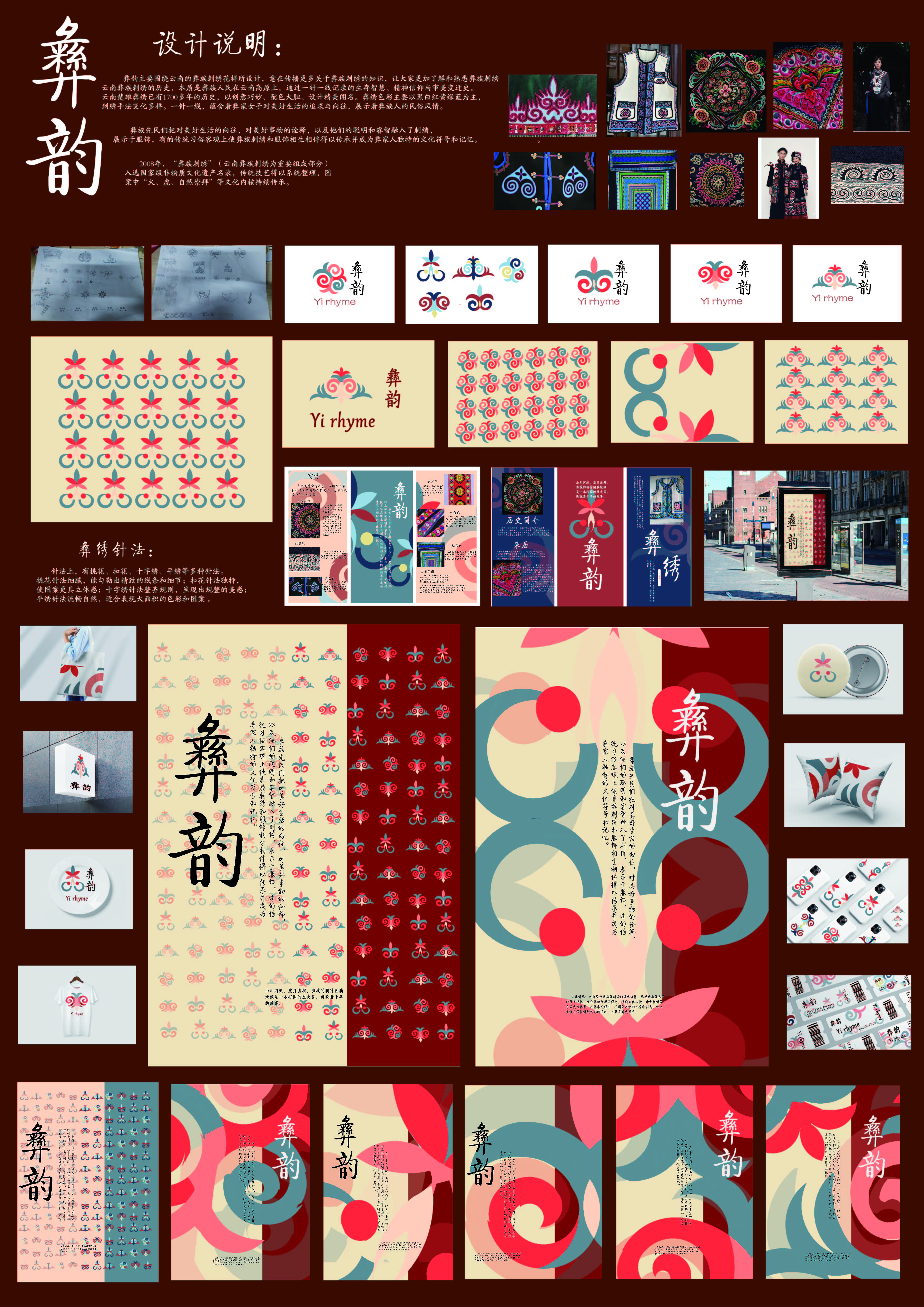 作品说明:彝韵主要围绕云南的彝族刺绣花样所设计,意在传播更多关于彝族刺绣的知识,让大家更加了解和熟悉彝族刺绣