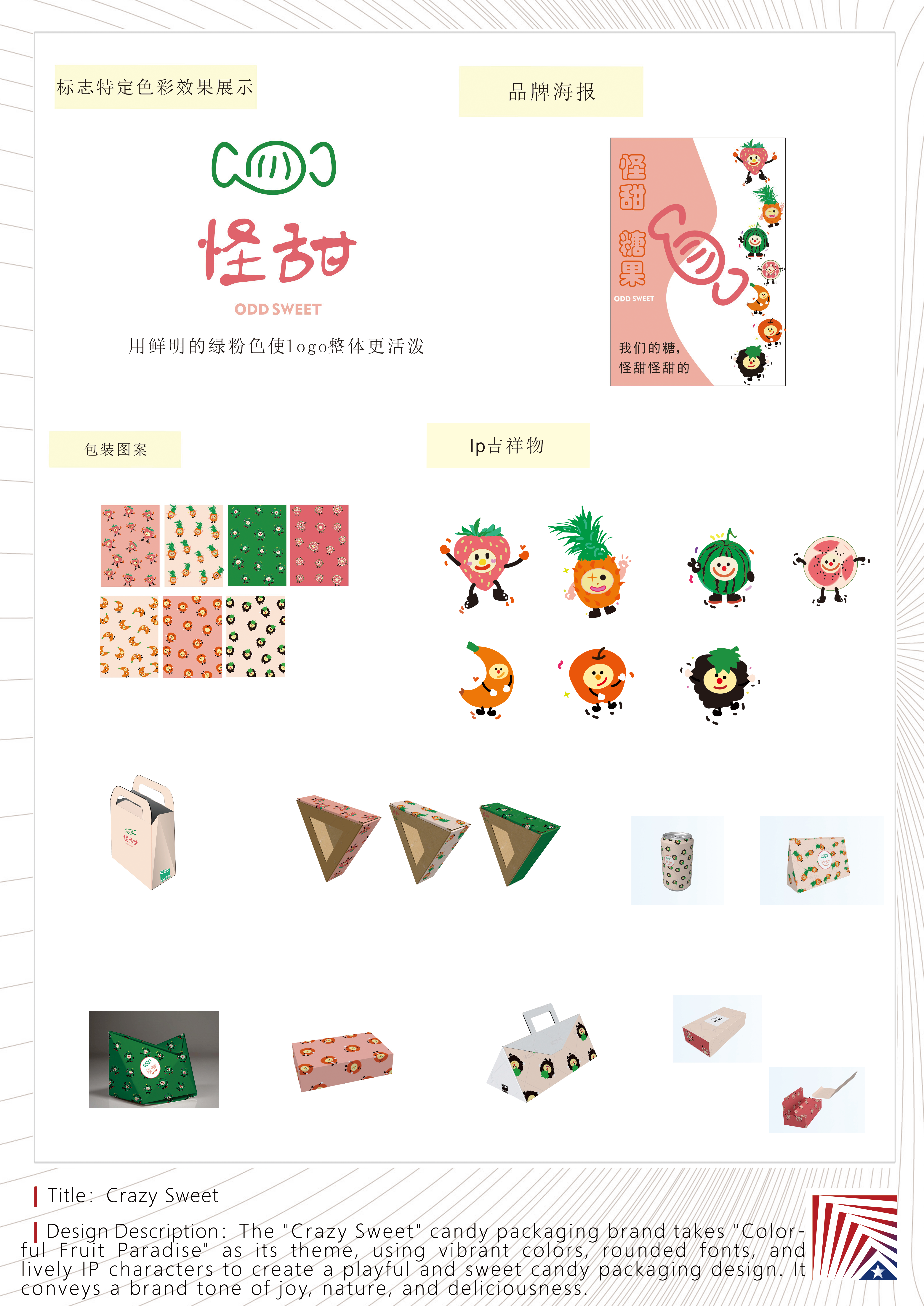 作品说明:本款糖果包装以“缤纷果乐园”为主题,通过活泼的色彩、圆润的字体与生动的IP形象,打造一款充满童趣与甜蜜感的糖果包装,传递欢乐、自然与美味的品牌调性。