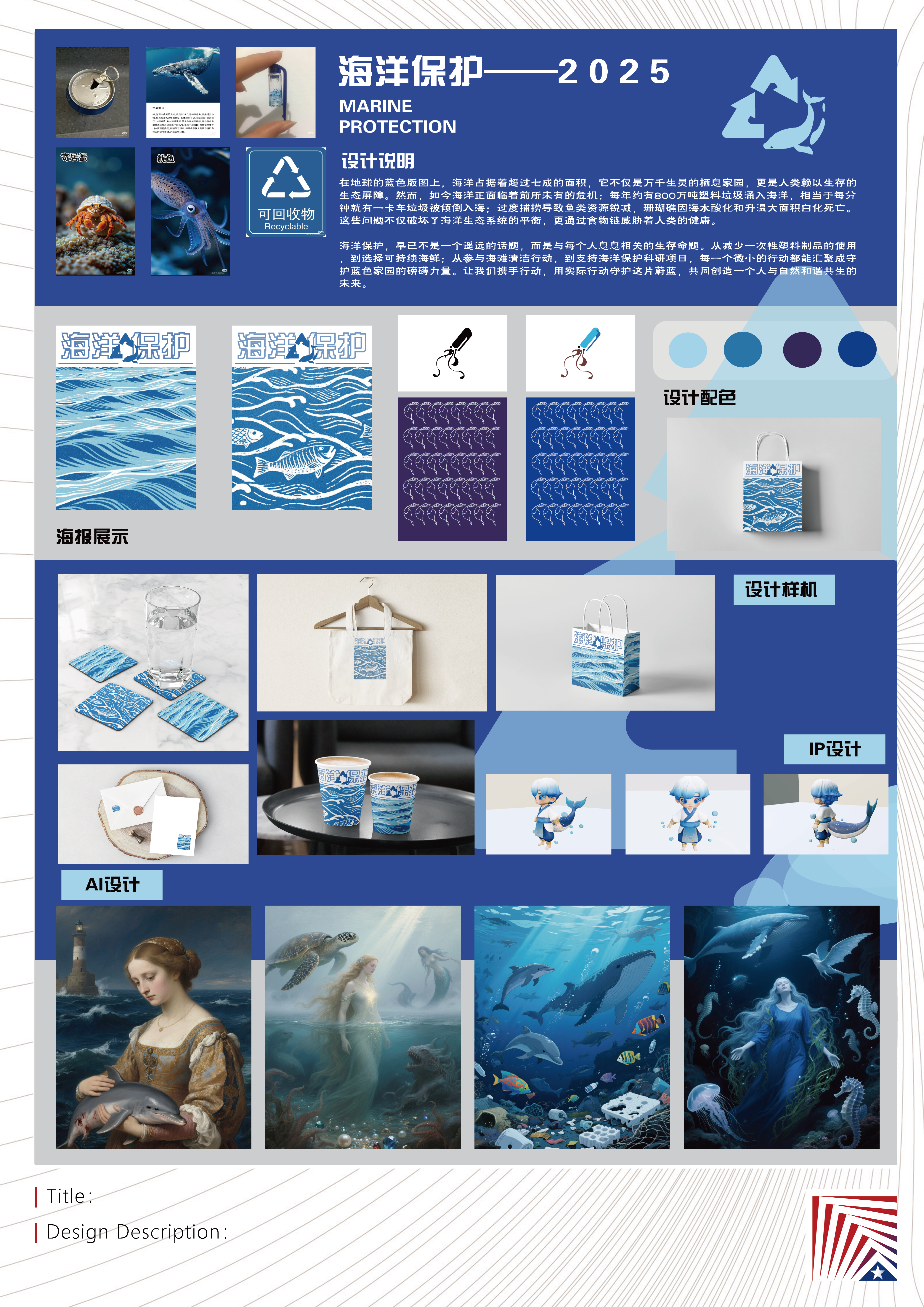 作品说明:在地球的蓝色版图上,海洋占据着超过七成的面积,它不仅是万千生灵的栖息家园,更是人类赖以生存的生态屏障。然而,如今海洋正面临着前所未有的危机:每年约有800万吨塑料垃圾涌入海洋,相当于每分钟就有一卡车垃圾被倾倒入海;过度捕捞导致鱼类资源锐减,珊瑚礁因海水酸化和升温大面积白化死亡。这些问题不仅破坏了海洋生态系统的平衡,更通过食物链威胁着人类的健康。