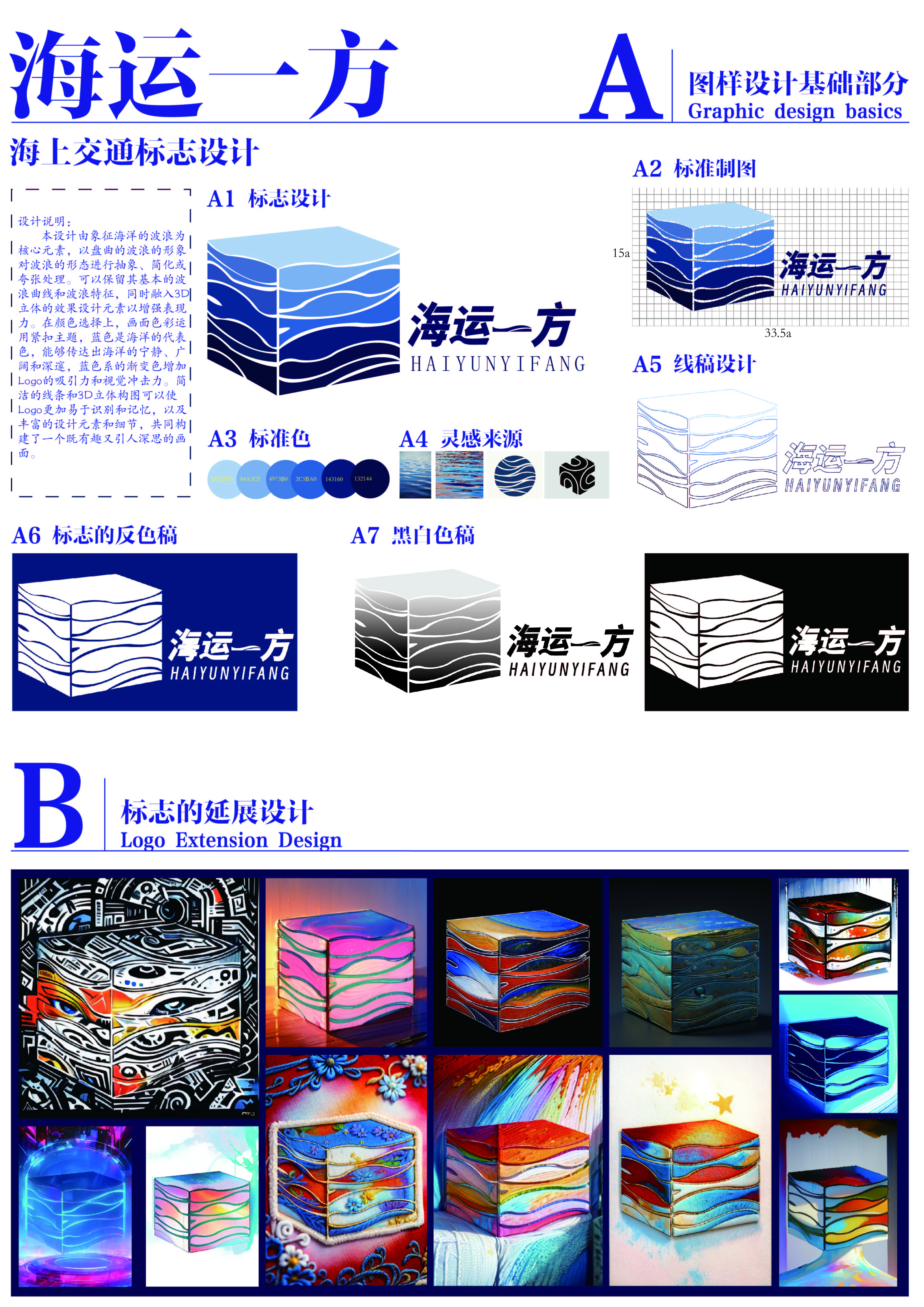 作品说明:本设计由象征海洋的波浪为核心元素,以盘曲的波浪的形象,对波浪的形态进行抽象、简化或夸张处理。可以保留其基本的波浪曲线和波浪特征,同时融入3D立体的效果设计元素以增强表现力。在颜色选择上,画面色彩运用紧扣主题,蓝色是海洋的代表色,能够传达出海洋的宁静、广阔和深邃,蓝色系的渐变色增加Logo的吸引力和视觉冲击力。简洁的线条和3D立体构图可以使Logo更加易于识别和记忆,以及丰富的设计元素和细节,共同构建了一个既有趣又引人深思的画面。