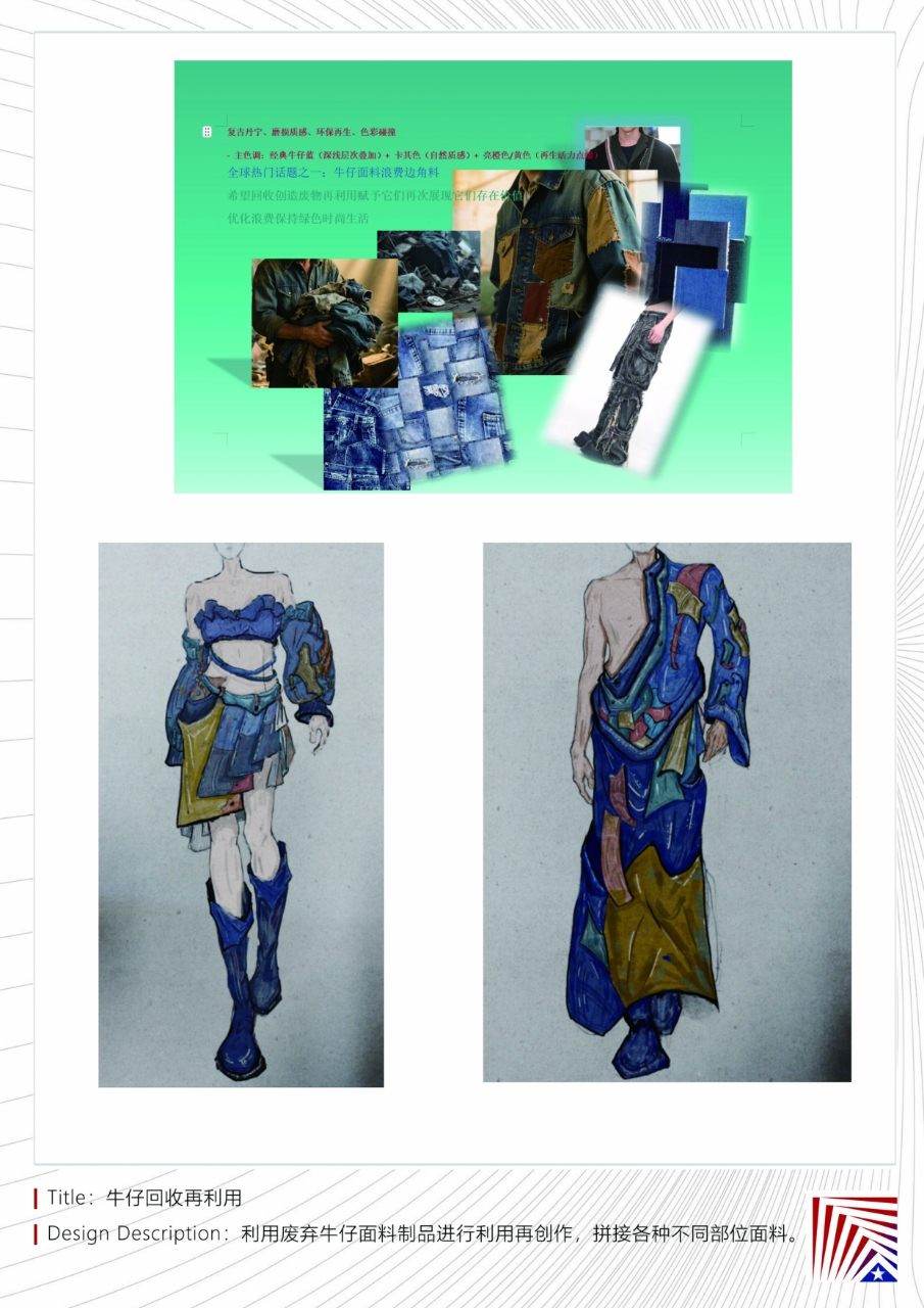 作品说明:牛仔处理污染巨大,提倡回收再利用