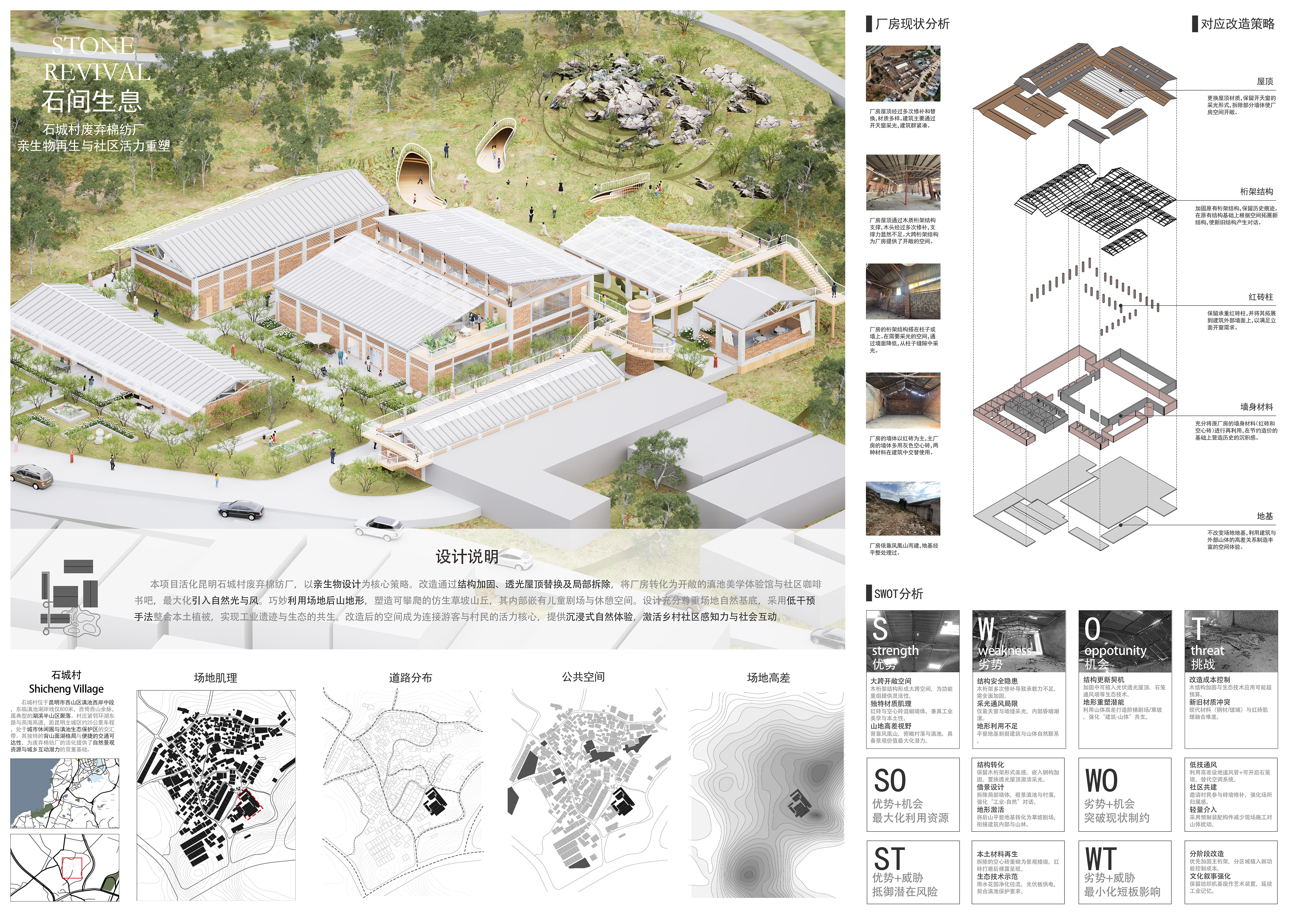 作品名称:石间生息——石城村废弃棉纺厂亲生物再生与社区活力重塑