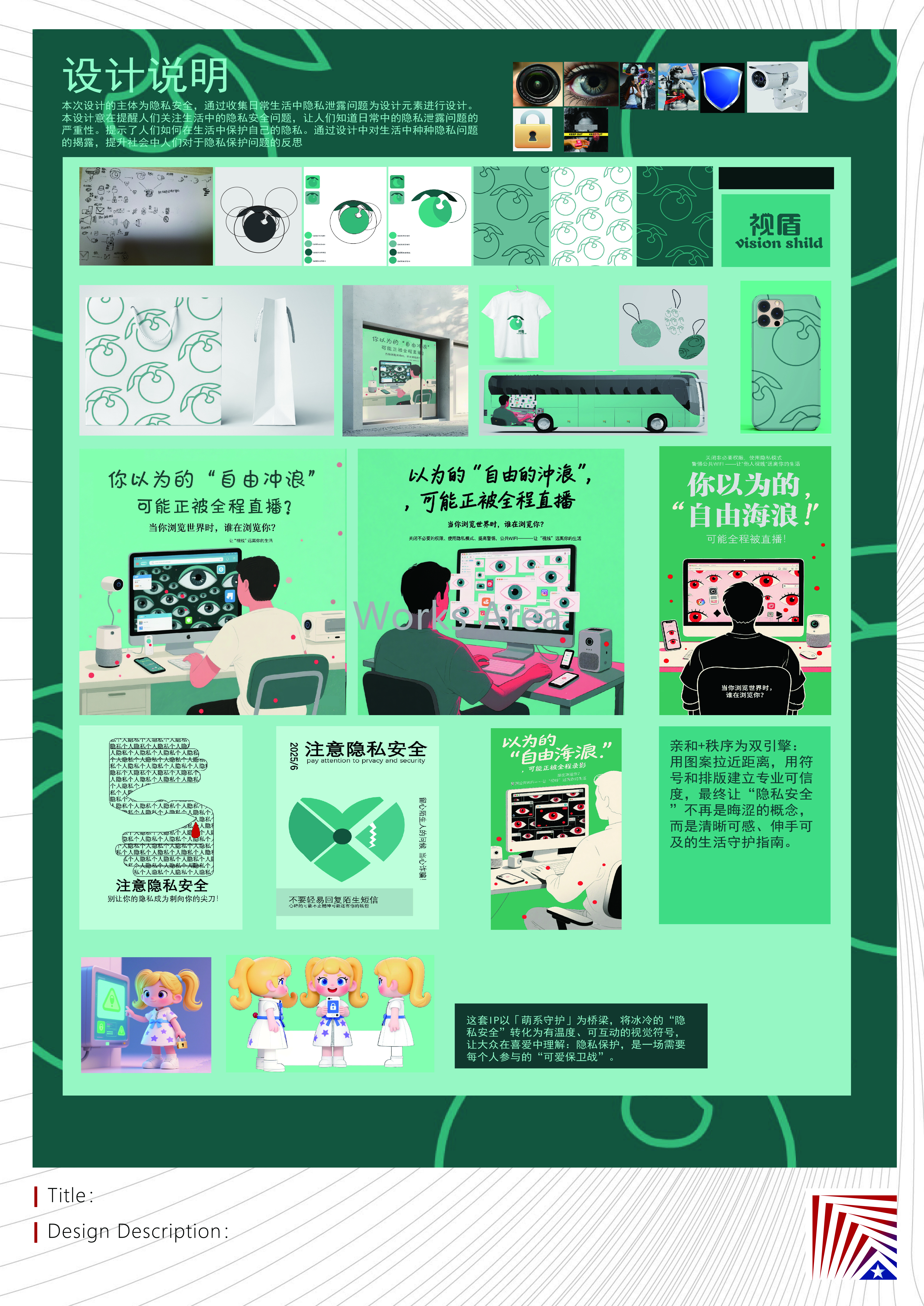 作品说明:本次设计的主体为隐私安全,通过收集日常生活中隐私泄露问题为设计元素进行设计。